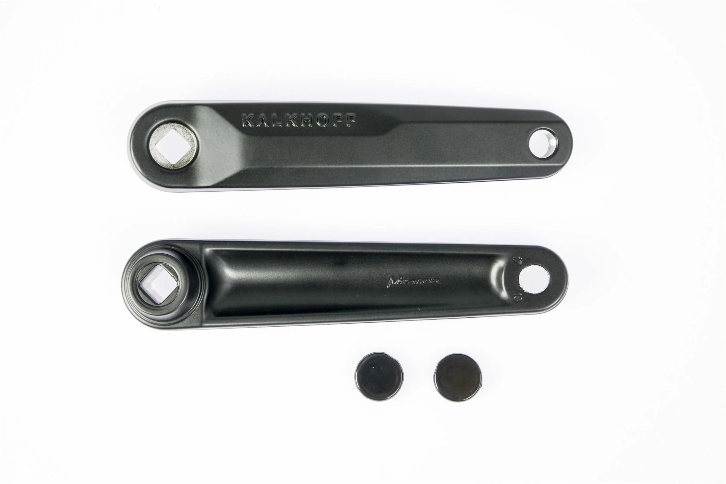 Paire de manivelles carré originales Kalkhoff/Miranda noir/argent mat pour les vélos électriques Kalkhoff, Impulse et Panasonic.