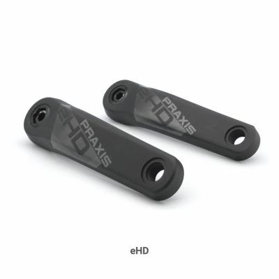 Manivelles Praxis Works en aluminium « Heavy Duty » pour VTT électriques. Conçues pour encaisser les coups et vous suivre dans une pratique VTTAE intensive.